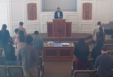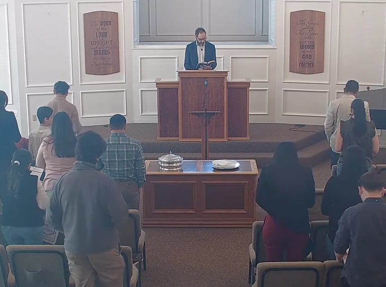 Nos reunimos para cantar himnos al Señor, orar en comunidad, escuchar la predicación expositiva de las Escrituras y, todos aquellos que hemos sido bautizados como nuevos creyentes, celebramos juntos la Santa Cena.